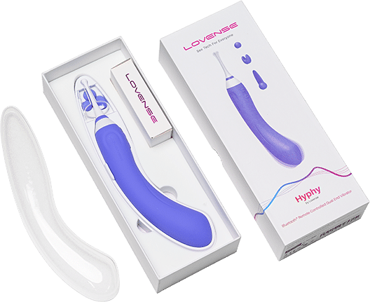 The Lovense Hyphy is a modern and powerful vibrator designed for women. This toy for adults is different from others because it has two powerful motors, three attachments, two working sides. The second side is for G-spot stimulation.